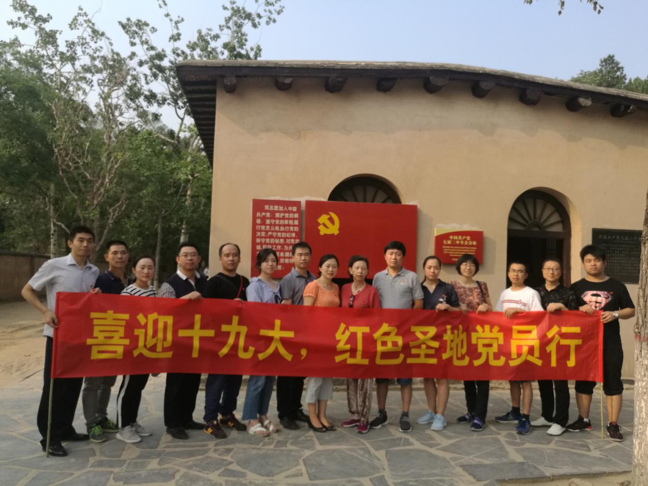 在七届二中全会的会址前面有一面鲜红的党旗,党旗旁边还书写着庄严的入党誓词,在大家的一致认可下,在这个特别有纪念意义的地方,我们一起重温了入党誓词,激起大家回想积极要求入党时的激情和追求,以及入党宣誓时的庄严承诺和奋斗决心,增强了支部党员的光荣感、责任感和使命感。