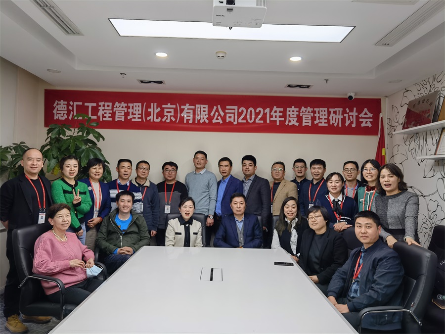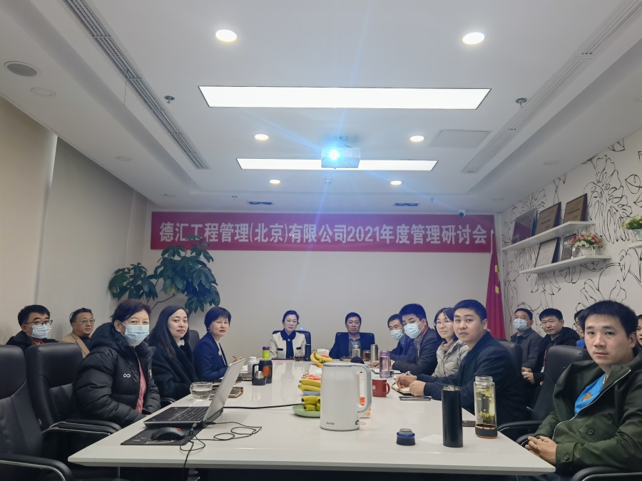 2022年18日,德汇工程管理(北京)有限公司召开了2021年年终管理研讨会。会议由副总经理林晓东主持,公司管理层共计21人参加本次会议,集团公司路洋和北京中和建城建筑工程设计有限公司总经理卢礼杰列席了本次会议。