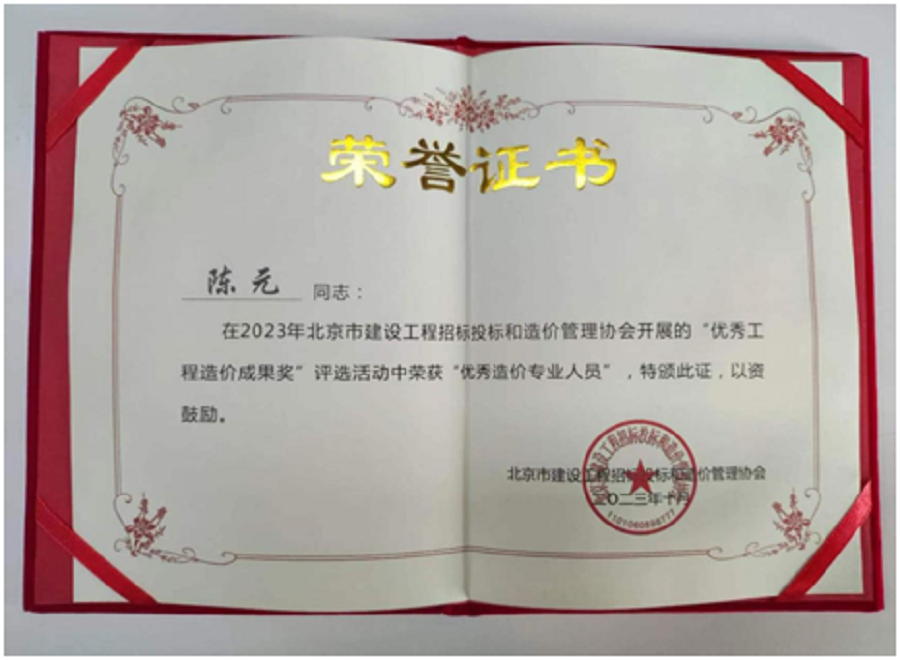 2023年10月在北京市建设工程招标投标和造价管理协会开展的2023年度优秀成果案例评选过程中,爱体育首页荣获优秀工程造价成果奖,同时我司造价一部工程师李海英、陈元同志被评为“优秀造价专业人员”。