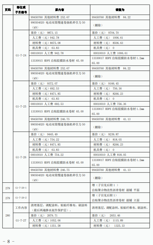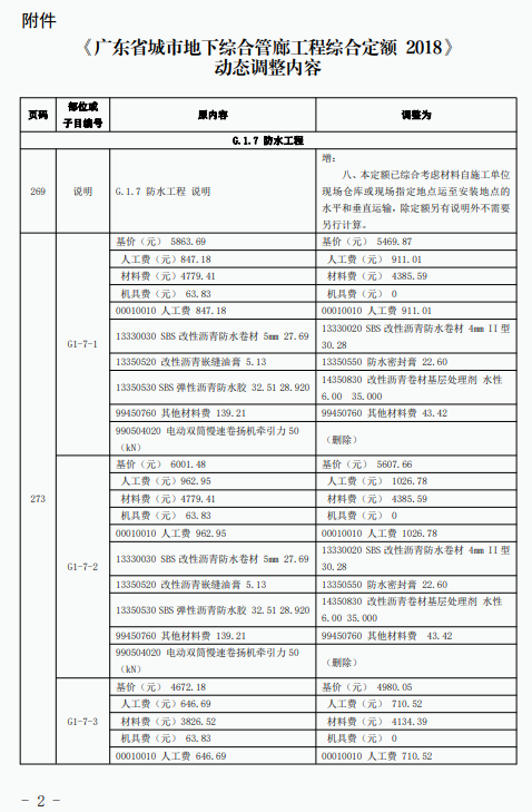 《建筑与市政工程防水通用规范》GB55030-2022(以下简称为“防水通用规范”)已颁布实施,根据新旧防水规范之间的差异,我站组织专家调整了《广东省城市地下综合管廊工程综合定额 2018》防水项目相关内容,现印发你们。所调整内容与我省现行工程计价依据配套使用,除合同另有约定外,已经合同双方确认的工程造价成果文件不作调整。执行中遇到的问题,请通过“广东省工程造价信息化平台——建设工程定额动态管理系统”及时反映。