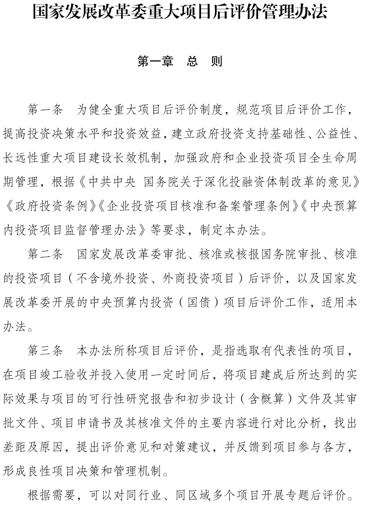 为健全重大项目后评价制度,规范项目后评价工作,提高投资决策水平和投资效益,建立政府投资支持基础性、公益性、长远性重大项目建设长效机制,加强政府和企业投资项目全生命周期管理,我们研究制定了《国家发展改革委重大项目后评价管理办法》。现印发给你们,请按照执行。