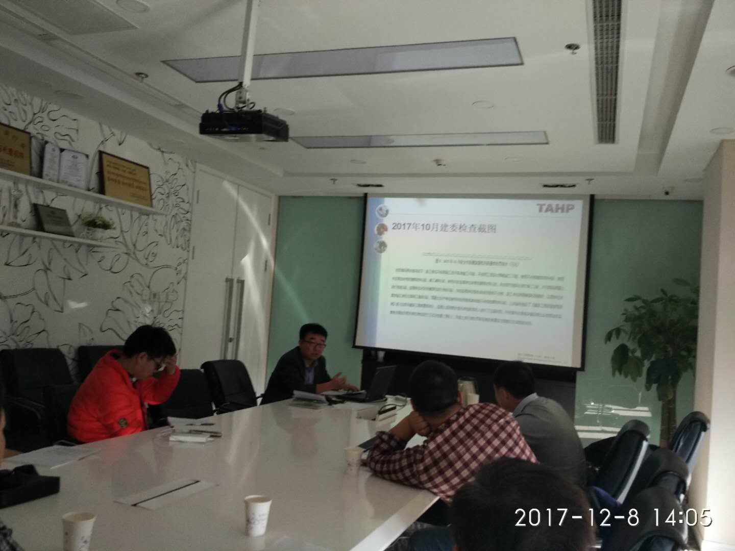点,在公司大会议室,工程部组织了相关人员进行了《北京市建设工程质量条例》的培训,由王润蓬副经理主讲。