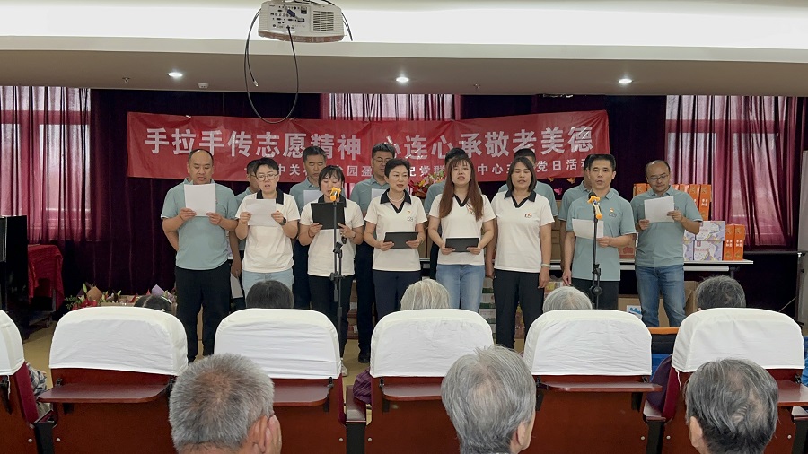 尊老爱幼是中华民族的优秀传统美德,在重阳节这个传统节日即将到来之际,929日下午,中和德汇公司党支部联合盈坤世纪党群服务中心,带着对老年人的尊敬、关怀与爱戴走进卢沟桥社会福利中心,通过表演节目、提供陪伴等方式丰富老年人的精神文化生活,同时为敬老院的老人们送去温暖、欢乐和祝福,共同度过一个温馨快乐的重阳节。