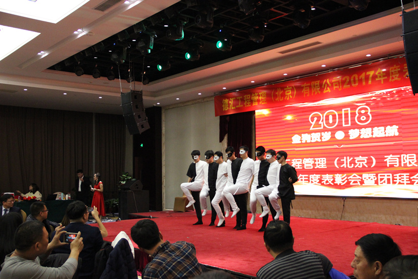 年会上,在公司高管进行了热情洋溢的诗朗诵表演,主持人宣布年会开始,随后,王维东总经理发表了新年致辞,勉励各部门员工在2017双亿佳绩的基础上再接再厉,并衷心感谢大家多年对德汇公司事业的鼎力支持;段少佐副总经理宣读了2017年优秀员工表彰通报,并对2017年度优秀员工进行了颁奖,李红飞代表优秀员工发言,表达了继续为公司勤恳工作的决心;造价一部二部全体100余位员工共同演唱了《站起来》,提振了整个年会的气势和气氛,各部门陆续带来精彩纷呈的表演最后,詹芙蓉董事长发表了祝酒词,晚宴正式开始,在晚宴进行过程中,穿插了紧张刺激的抽奖环节,晚宴一次又一次推向高潮