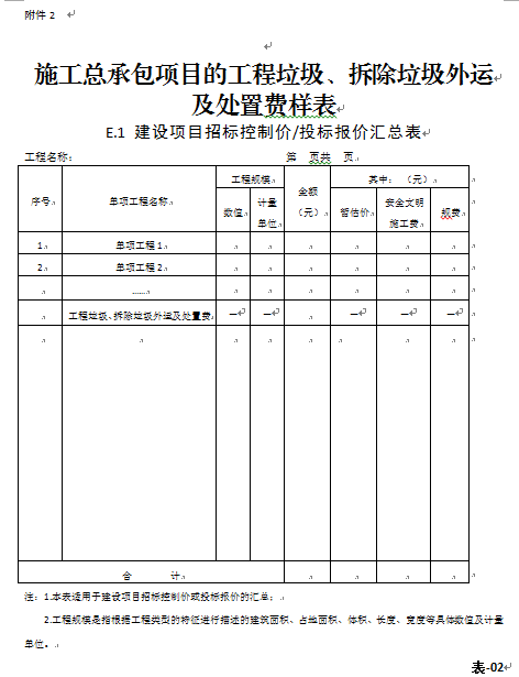 2.施工总承包项目的工程垃圾、拆除垃圾外运及处置费样表